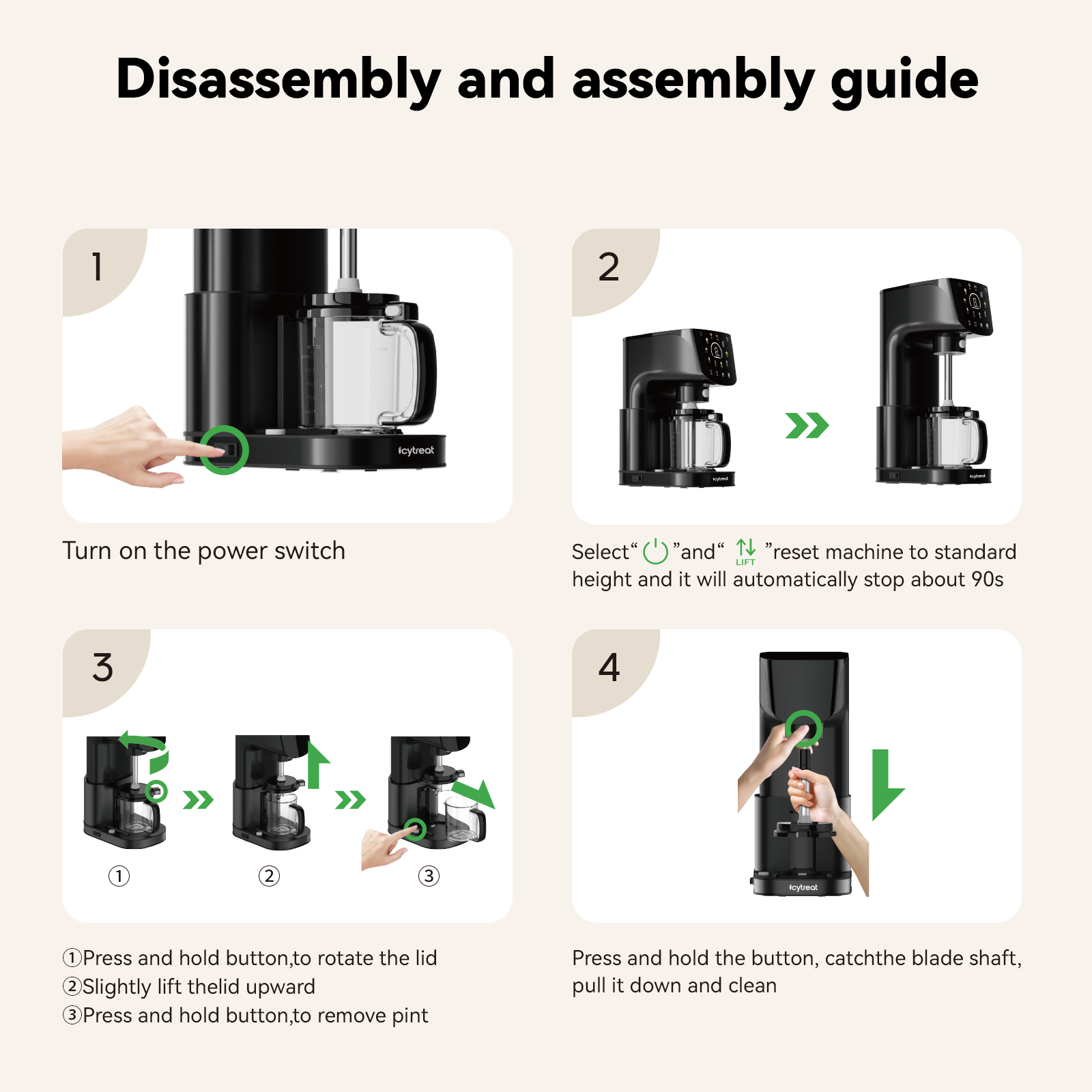 - Dishwasher-friendly: Unlike other ice cream machines, our stirring sticks and ice cream cups can be disassembled and put into the dishwasher to avoid food residues, making them more friendly to children and people with allergies.